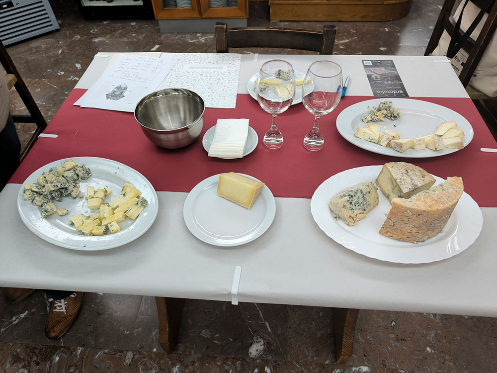 La degustación incluyó una variedad de quesos azules, de oveja y de vaca, procedentes de distintas regiones: Rioja, Asturias y Córdoba, entre otras.